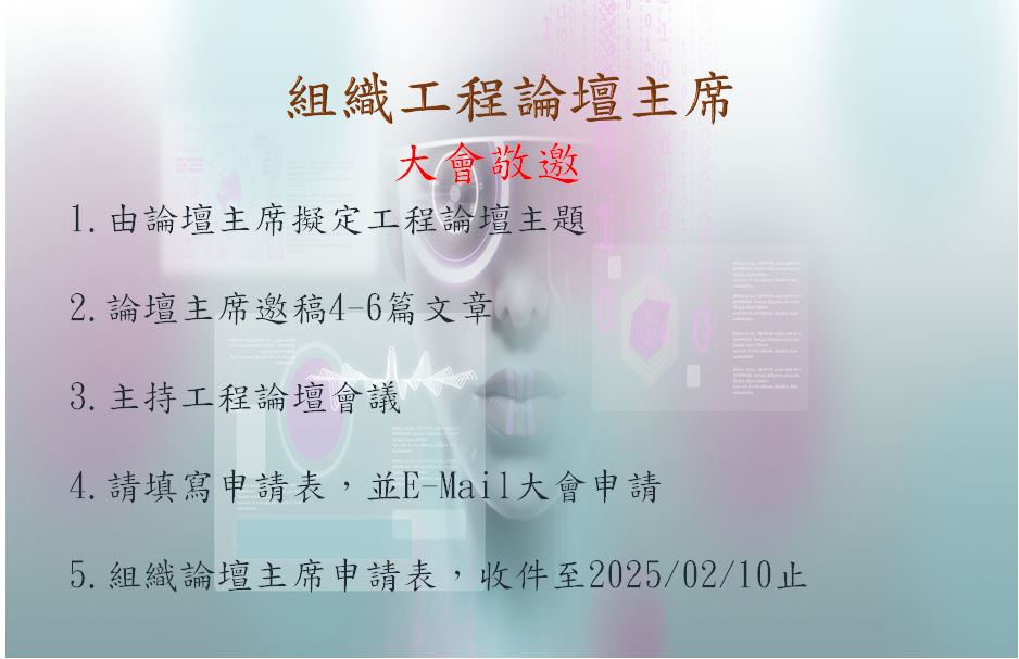 2025ISME台灣機電工程國際學會 全國學術研討會 Scroll to top 作者註冊 | 作者登入 | 審稿專區 | 報名繳費 | 繳費查詢 Learn more This is default text for notification bar Learn more